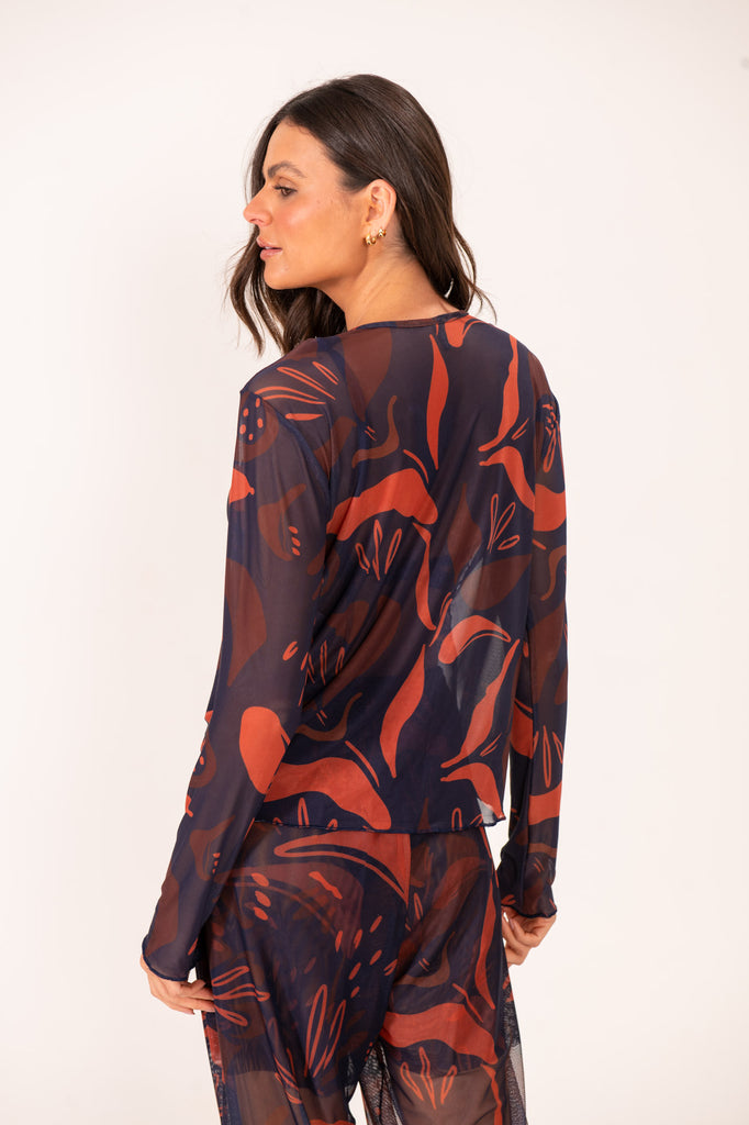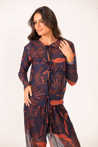 Blusa Laços Tule Leque Marinho