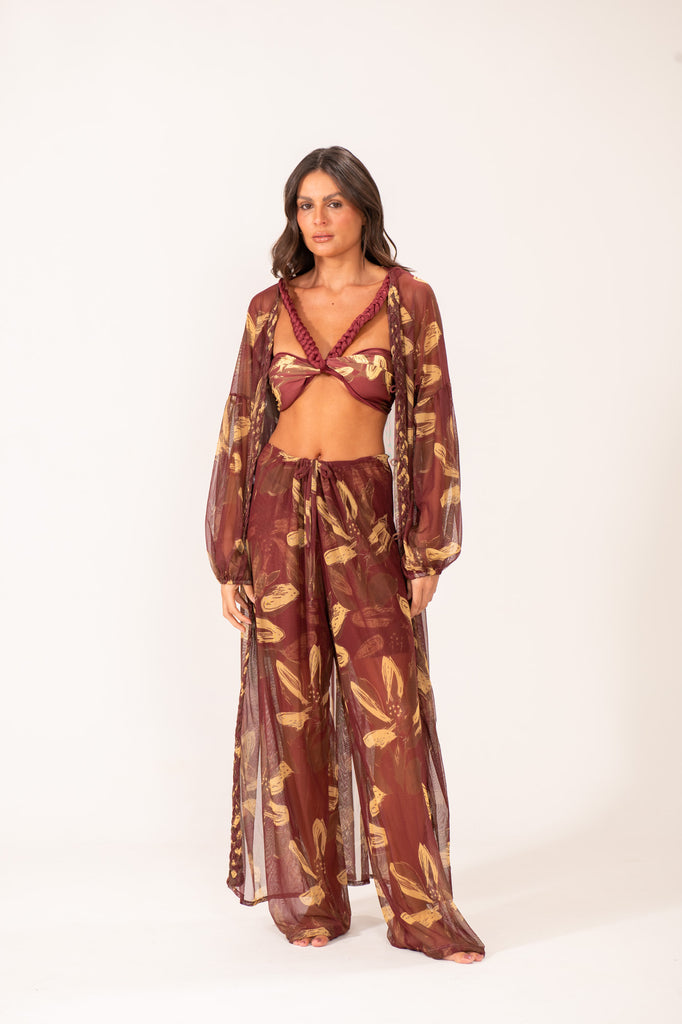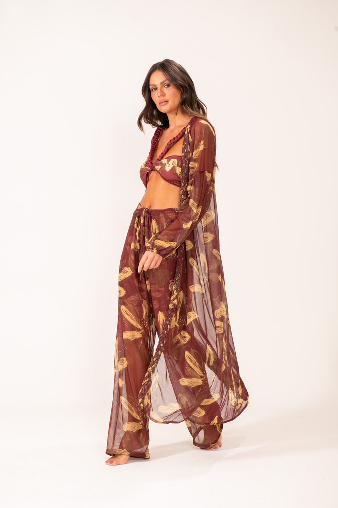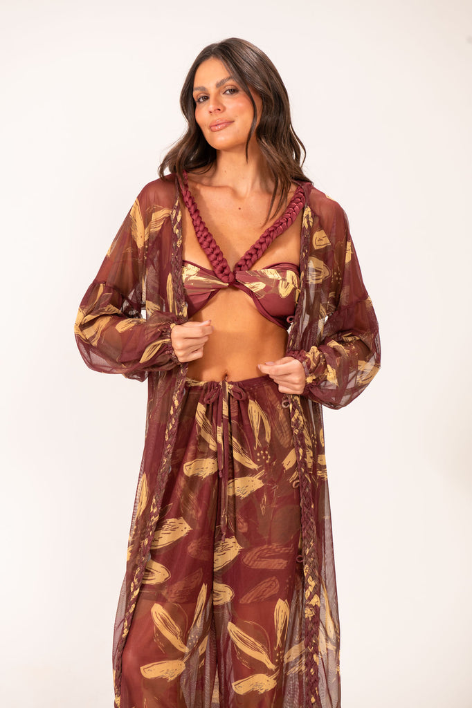 Coletão Camisa Macramê é uma peça inteira, longa, podendo ser usada aberta ou fechada. Tem detalhe em macramê feito a mão na parte da frente e fechada possui decote.
